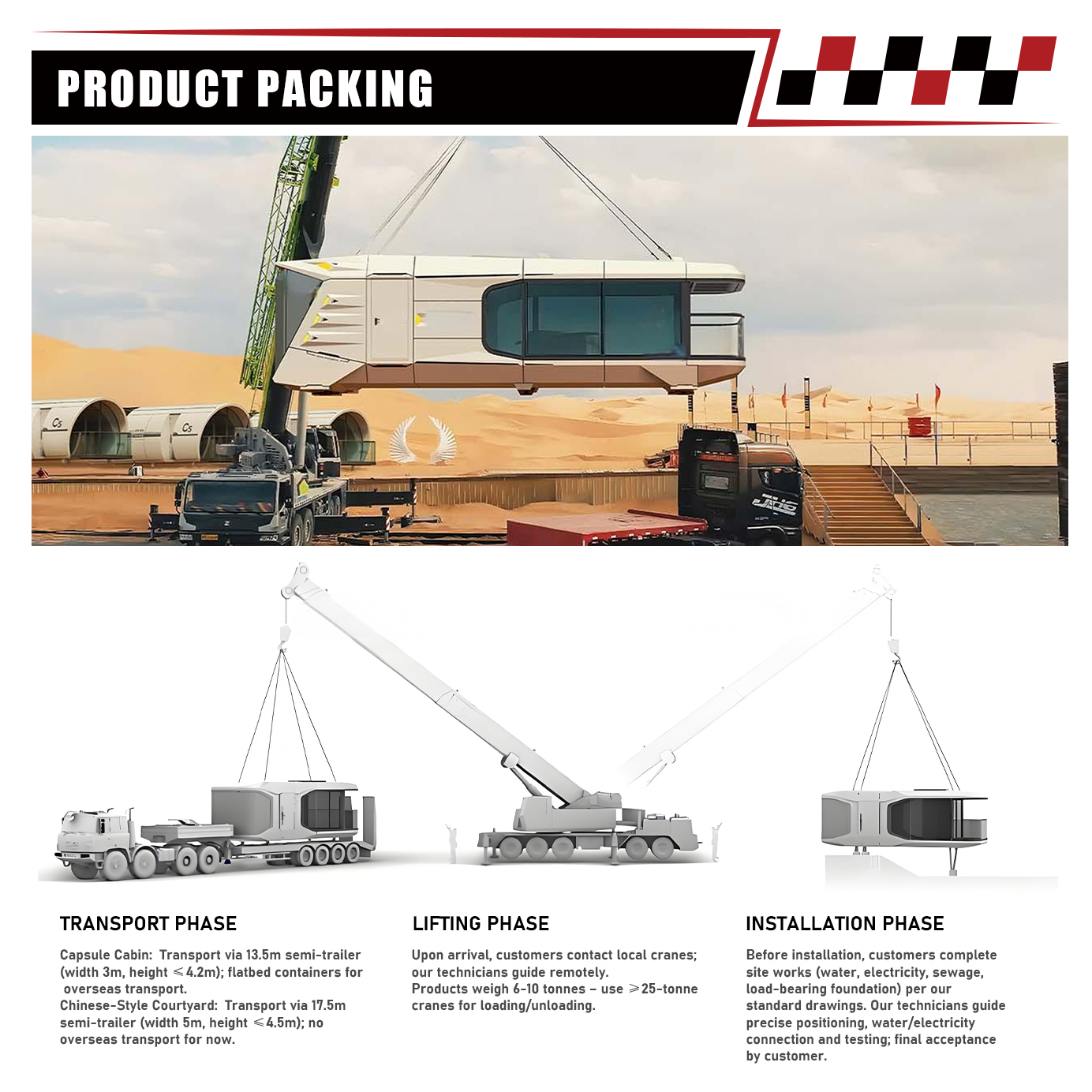 Shipping cost depends on whether the capsule house is delivered as a finished unit or partially assembled. Compact transport configurations reduce freight volume and lower shipping costs, especially for overseas projects. For international buyers searching capsule house manufacturers or capsule house suppliers, logistics efficiency often determines overall project feasibility.